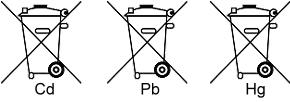 Batterien, die Schadstoffe enthalten, sind mit dem Symbol einer durchgekreuzten Mülltonne gekennzeichnet, ähnlich dem Symbol in der Abbildung. Diese Zeichen finden Sie auf schadstoffhaltigen Batterien und Akkus: